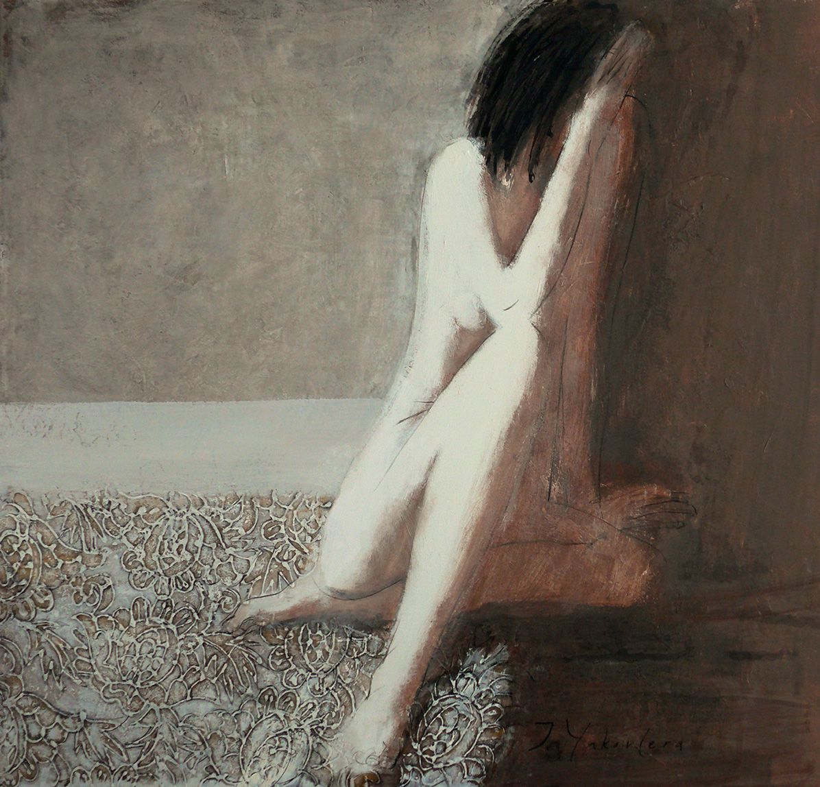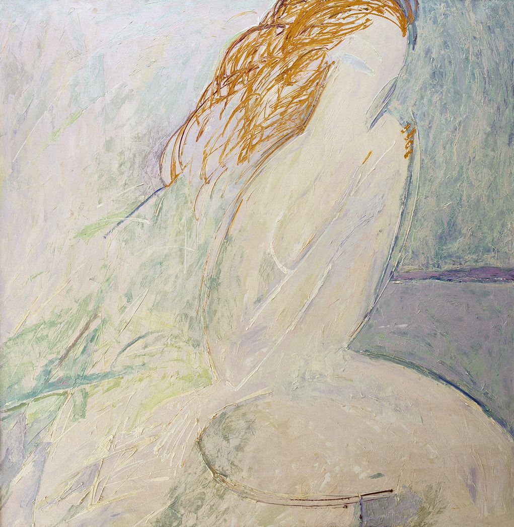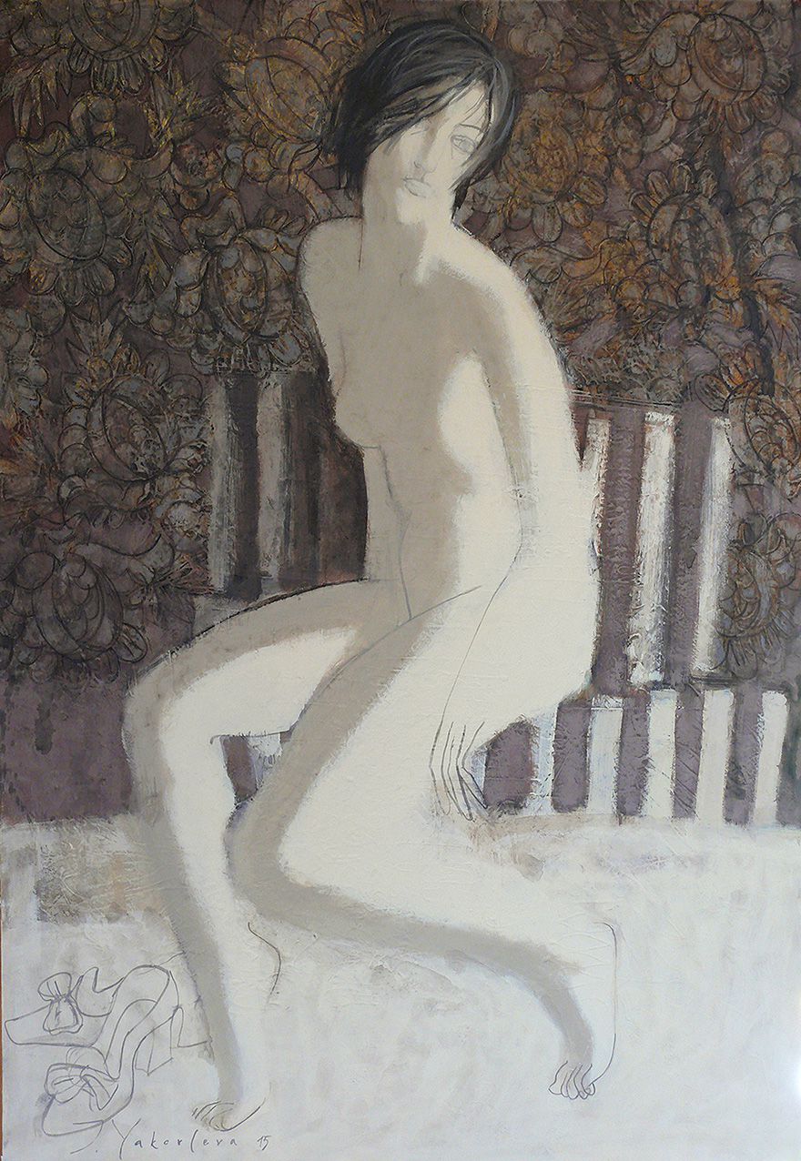 Белая с золотыми волосами150х150холстакр