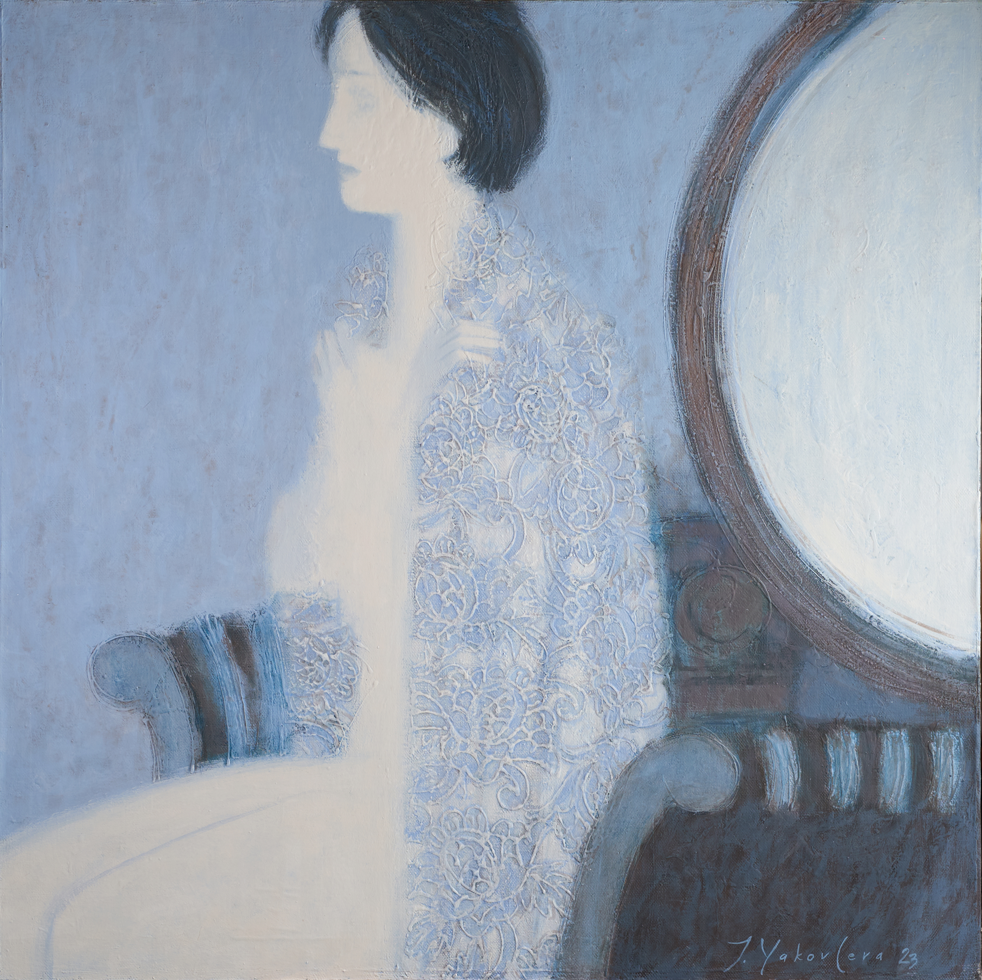 старое зеркало голубая100х100холстакрил2024