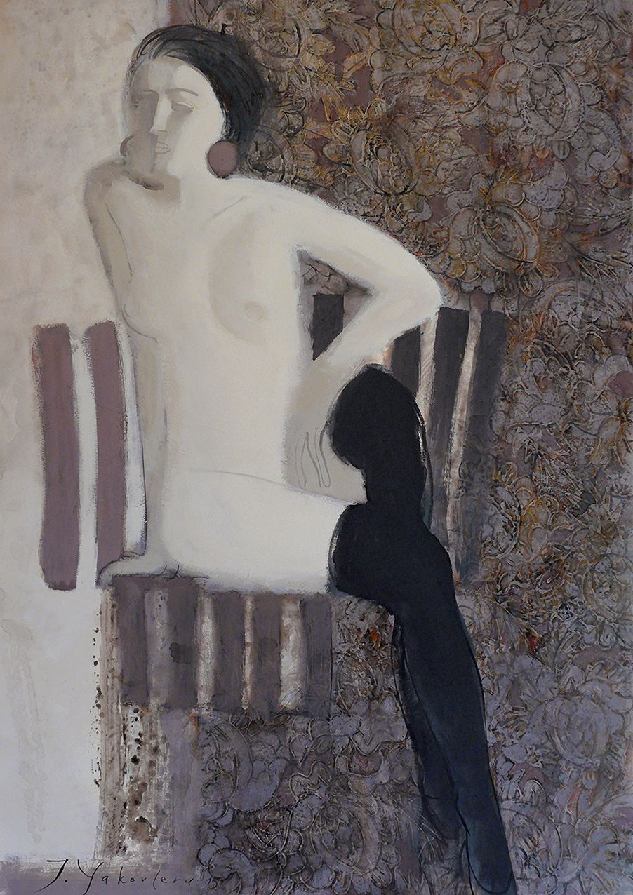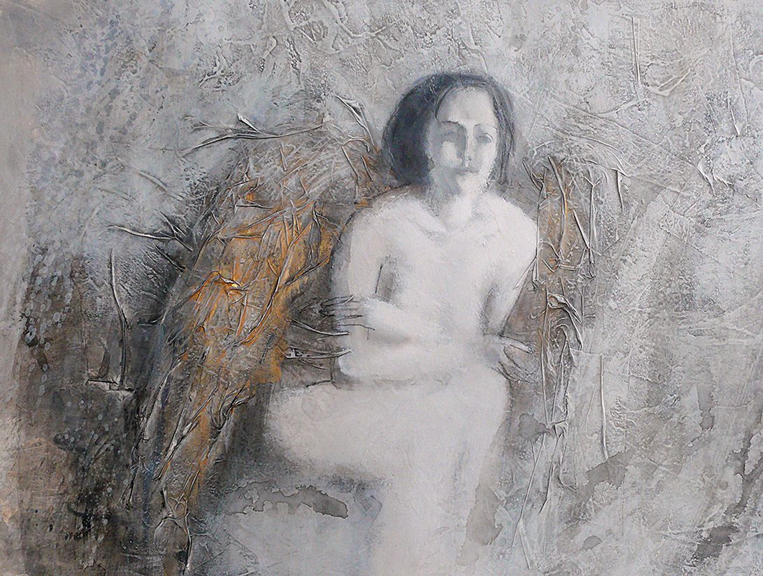 Сидящая с золотом50х65акрбум