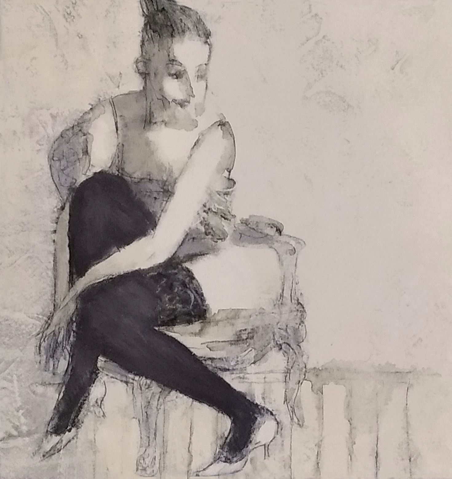 Девушка в кресле 1 45х45 акрил бумага